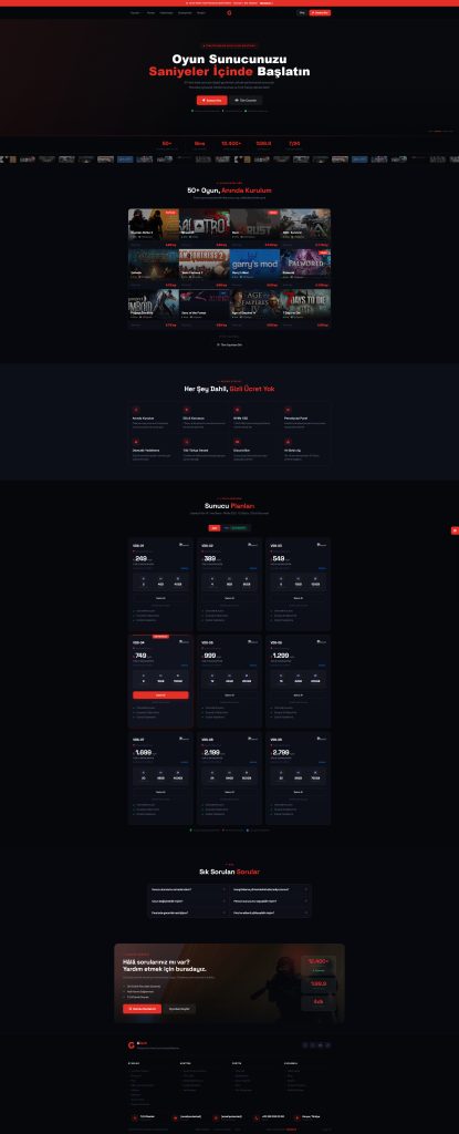 Modern oyun hosting firmaları için özel olarak tasarlanmış bu tema, yüksek dönüşüm sağlayan yapısıyla öne çıkar. Koyu tema tasarımı, dikkat çekici CTA alanları ve kullanıcı dostu arayüzü sayesinde ziyaretçileri kolayca müşteriye dönüştürür.