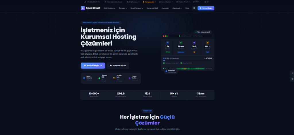 SpecXHost, hosting ve sunucu hizmeti sunan firmalar için özel olarak geliştirilmiş, modern tasarım ve yüksek performansı bir araya getiren profesyonel bir WordPress hosting temasıdır.